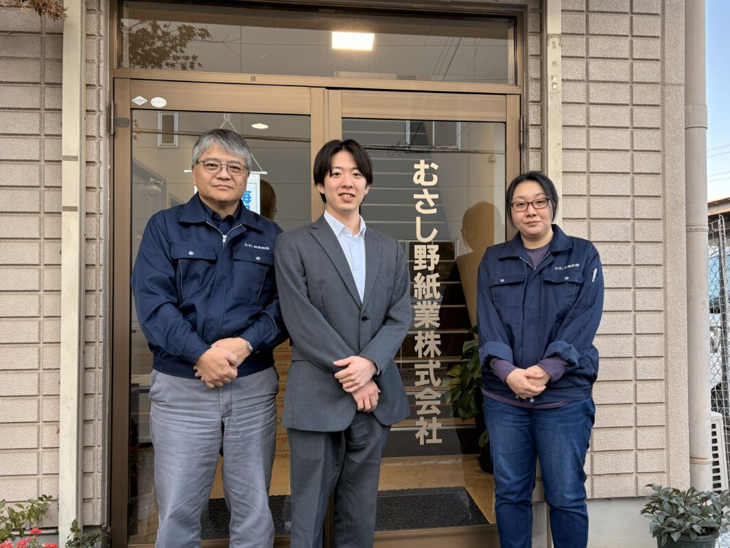 ※左から、むさし野紙業 小林様、アイポケット 和田、むさし野紙業加藤様