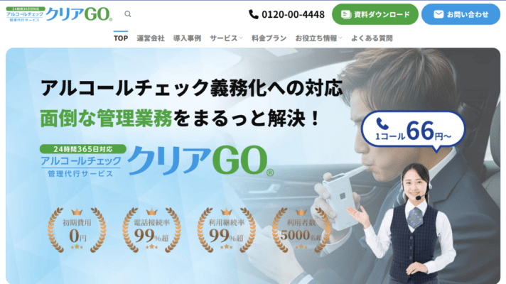 業界最安値水準に挑戦するアグレッシブな価格設定と、自社開発の洗練されたシステムが武器です。初期費用0円で、既存の検知器の機種を問わず利用できる専用アプリを提供します。最短5日で導入でき、管理者はPCからCSVで履歴を即座に出力可能です。一定規模以上のドライバーを抱える企業に特にメリットが大きい構造です。