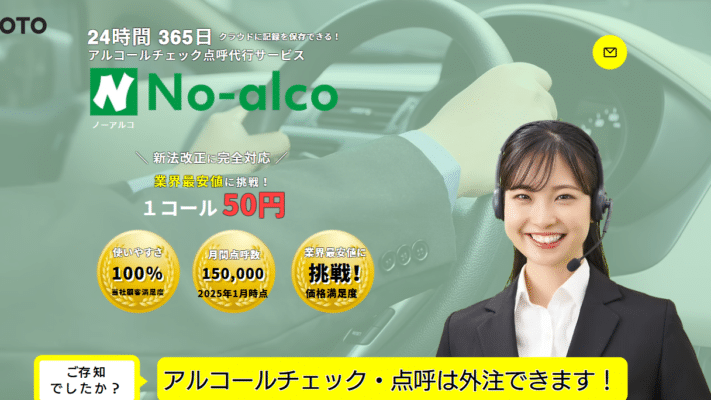 ノーアルコ (No-Alco) 株式会社OTO 基本月額+従量 無料 アカウント330円〜+1回50円